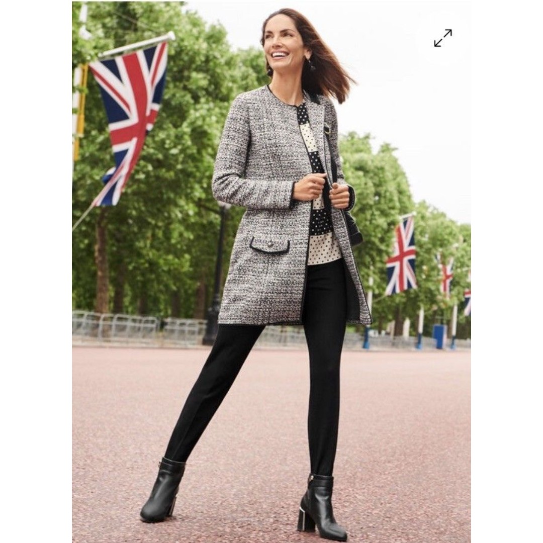 Talbots Textured Tweed Open Front Cardigan Jacket Black White Womens Size Large